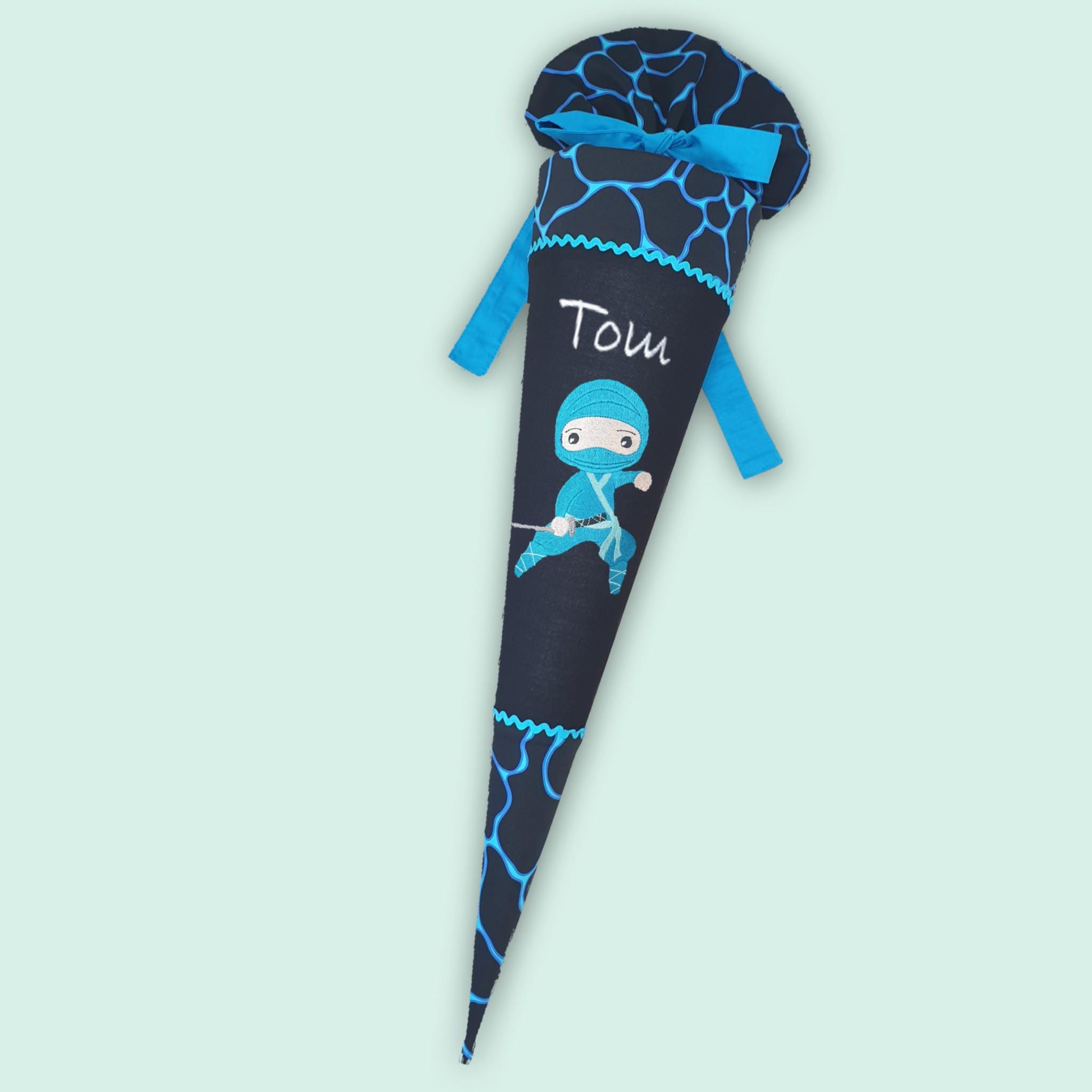 Jede Schultüte wird mit einem gestickten Motiv und dem Namen deines Kindes individuell gestaltet. Auf Wunsch fügen wir auch das Datum des ersten Schultages hinzu.