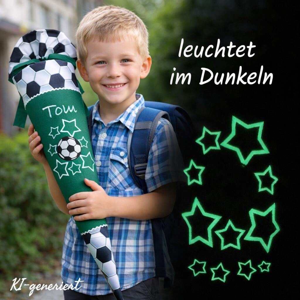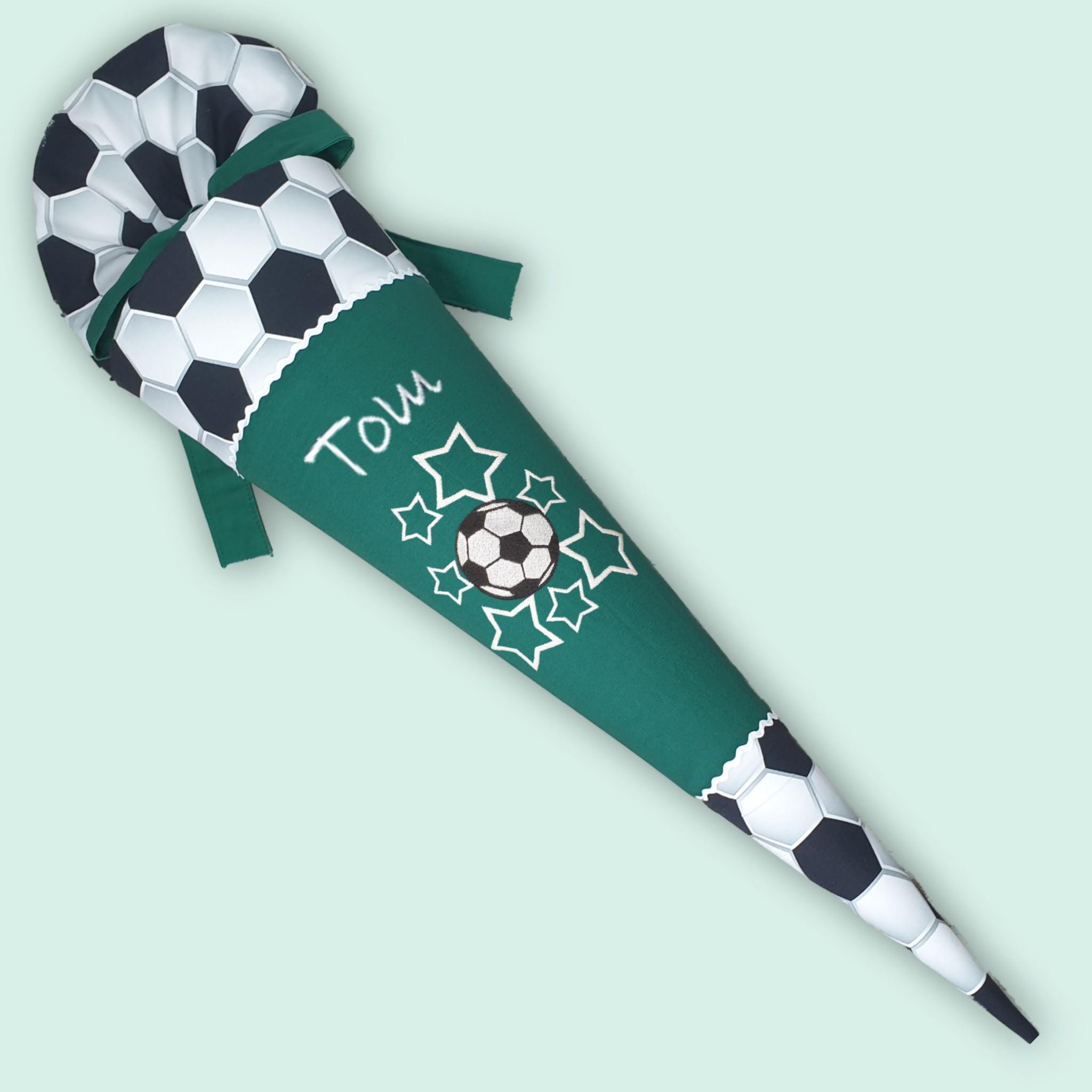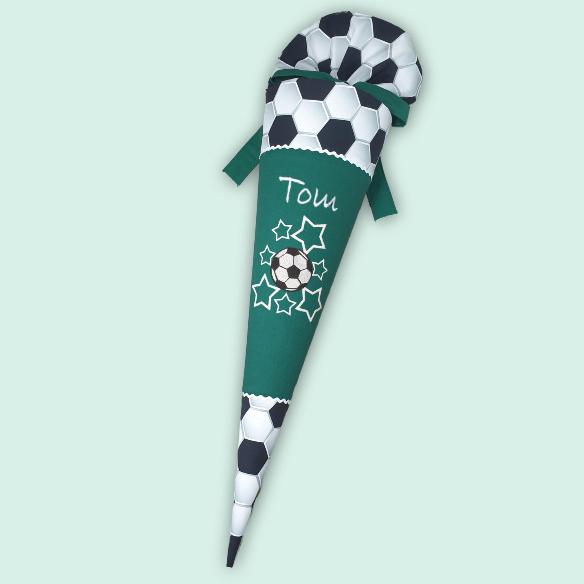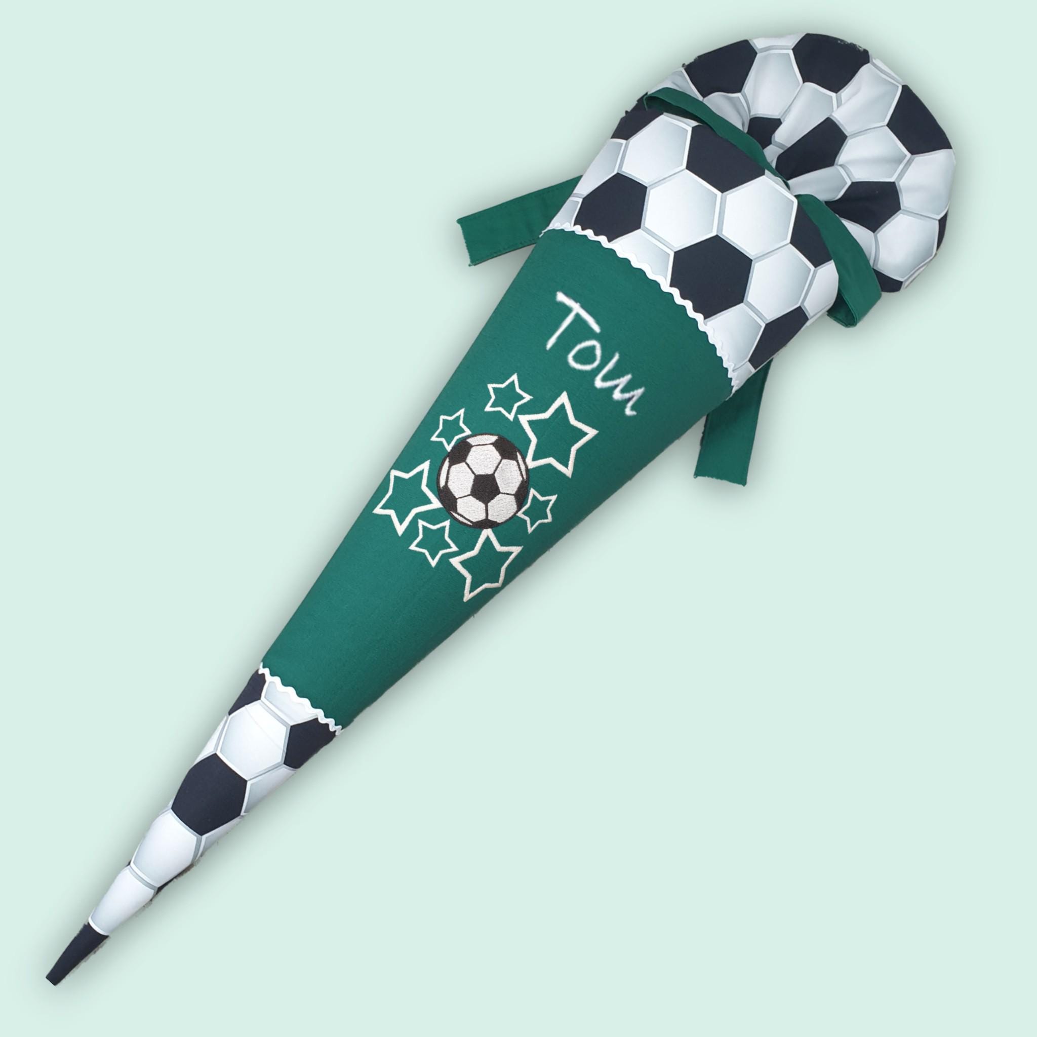 Schultüte mit Fussball und Namen in der Farbe Dunkelgrün