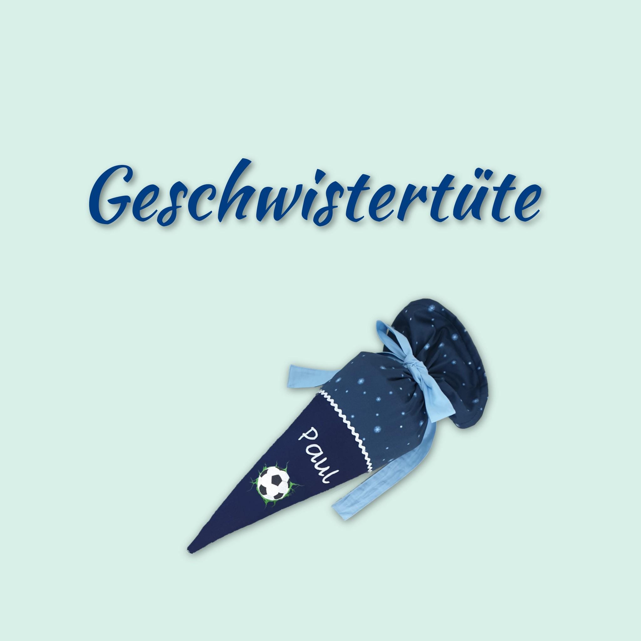 35 cm Geschwistertüte Fussball und Namen farblich auf den Kobärnikus Schulranzen abgestimmt.