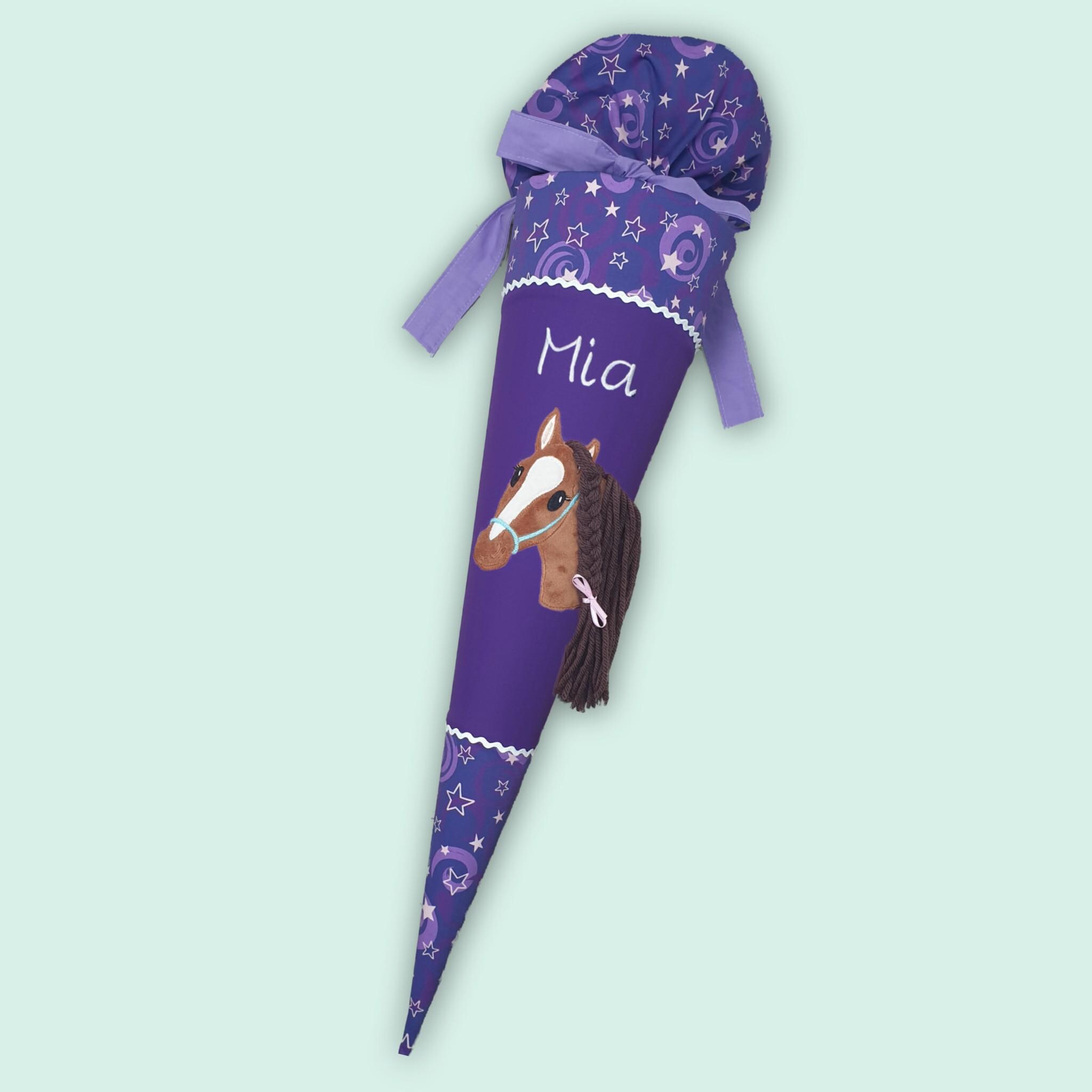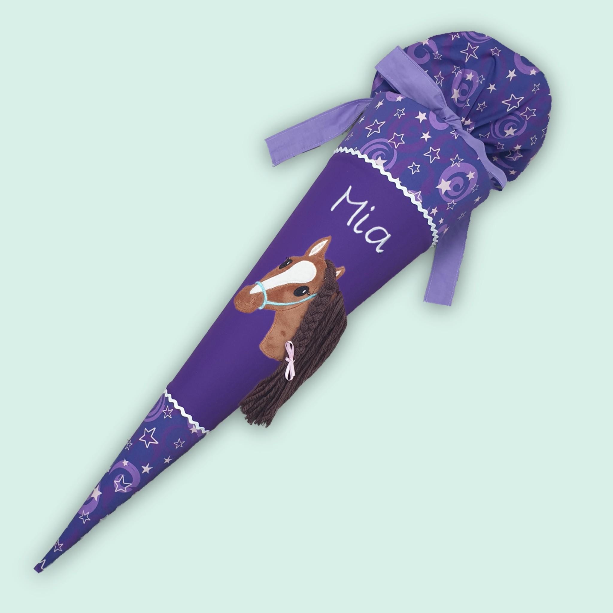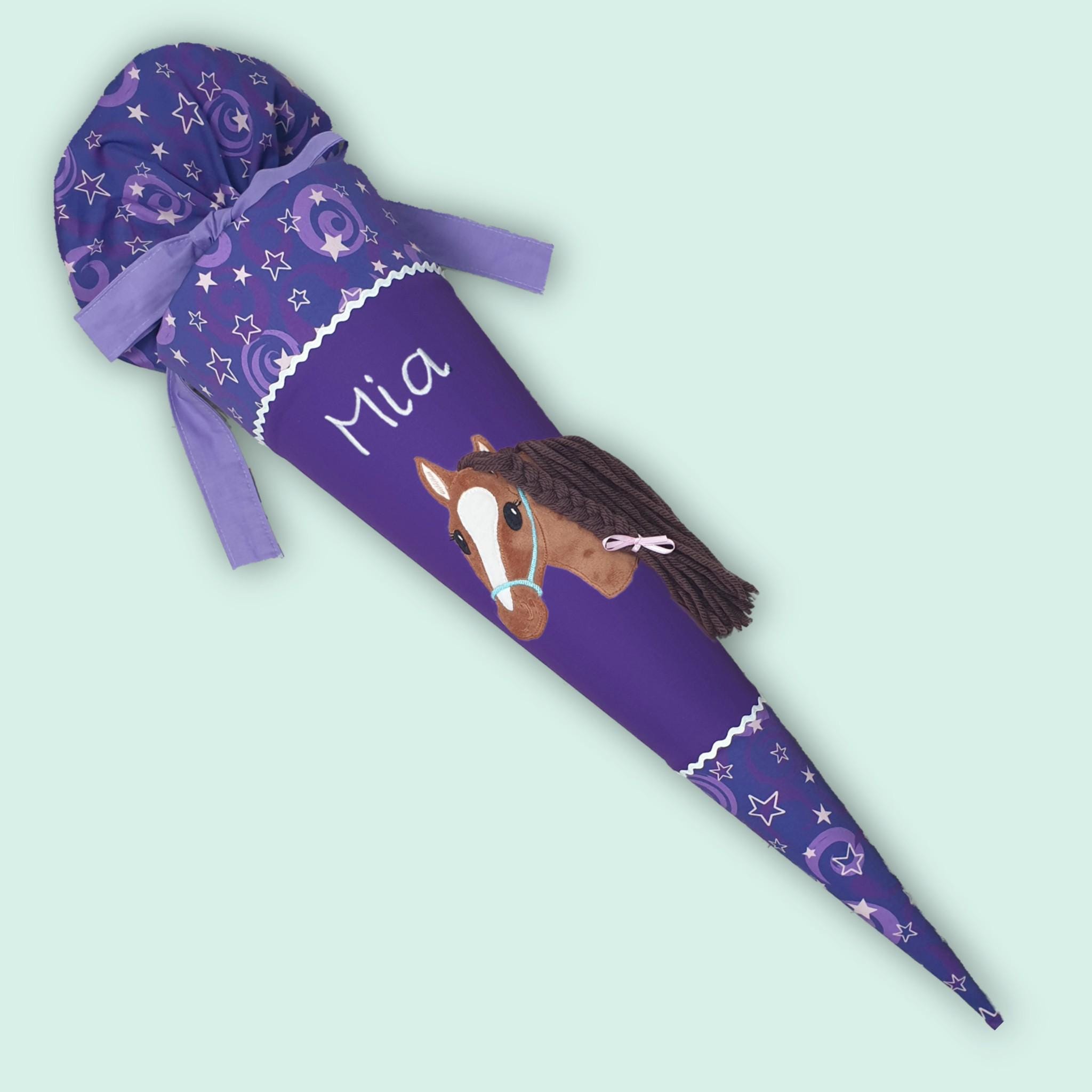 Schultüte Pferd und Namen farblich auf den step by step Pegasus Liv Schulranzen abgestimmt.