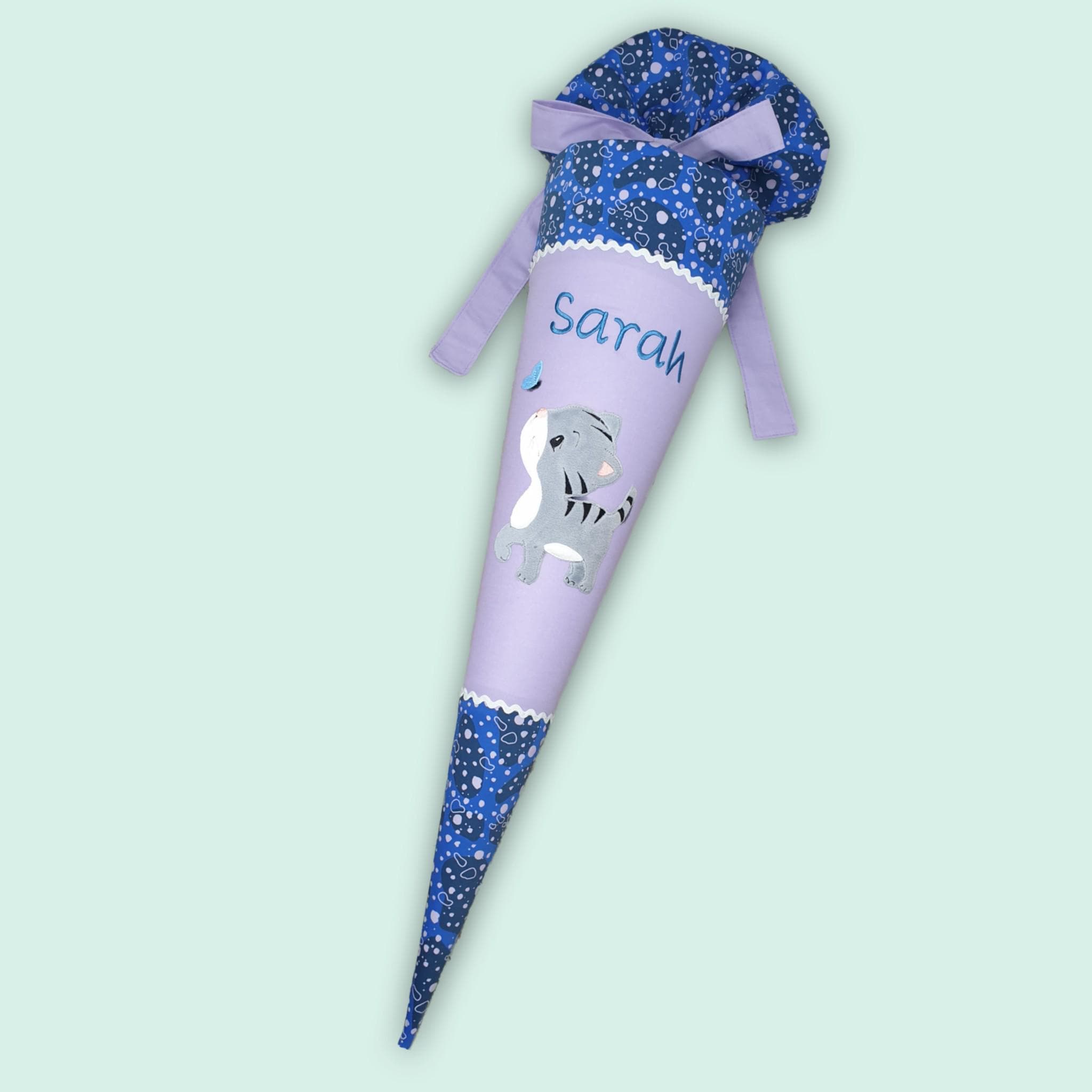 70 cm Schultüte oder 85 cm Schultüte mit Katze und Namen farblich auf den Ozeanbärwohner Schulranzen abgestimmt.