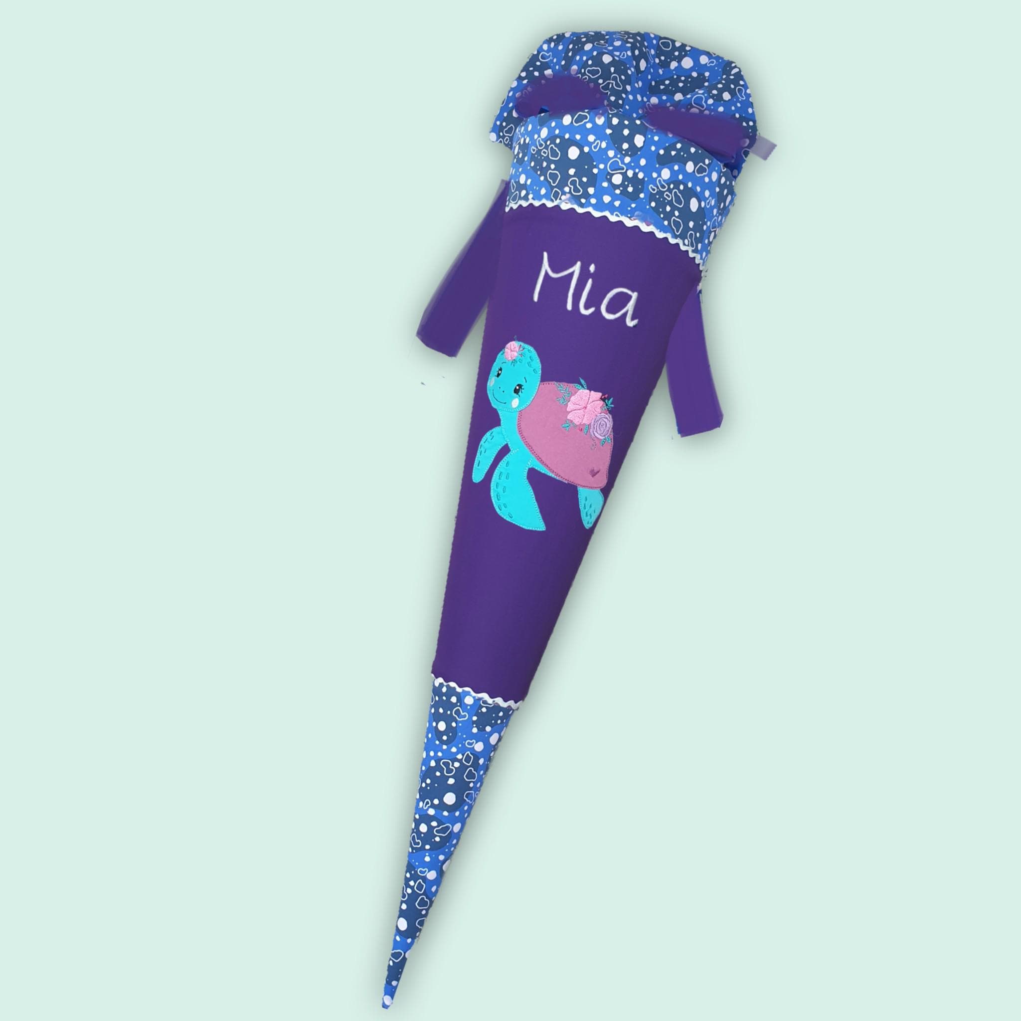 70 cm Schultüte oder 85 cm Schultüte mit Schildkröte und Namen farblich auf den Ozeanbärwohner Schulranzen abgestimmt.